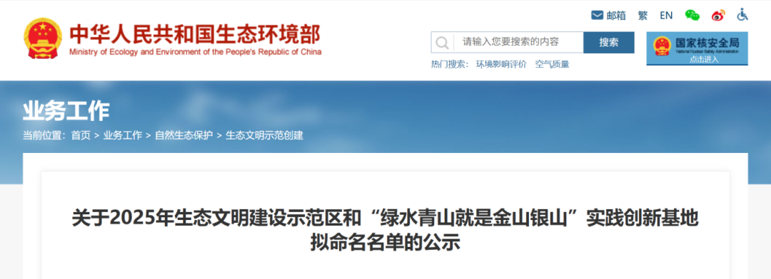 为公开、公平地开展生态文明建设示范区和绿水青山就是金山银山实践创新基地评选工作,现对2025年生态文明建设示范区和绿水青山就是金山银山实践创新基地拟命名名单进行公示: