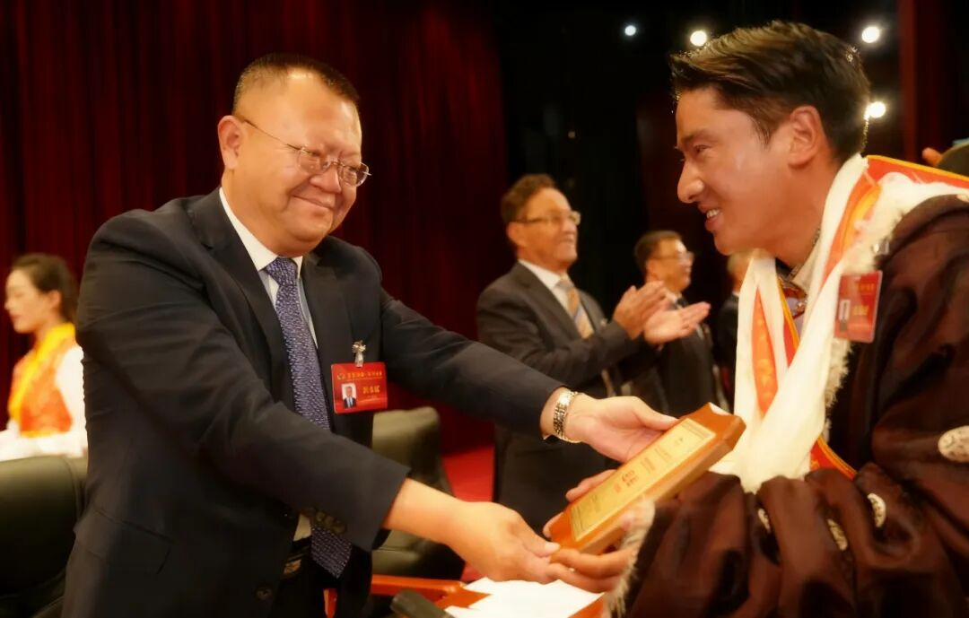 12月12日,“红色昌都·振兴奋进”群众性比赛活动第一届工作总结暨第二届动员部署会召开。这是庄劲松为获奖代表和优秀组织代表颁奖。记者  群旦次仁  摄